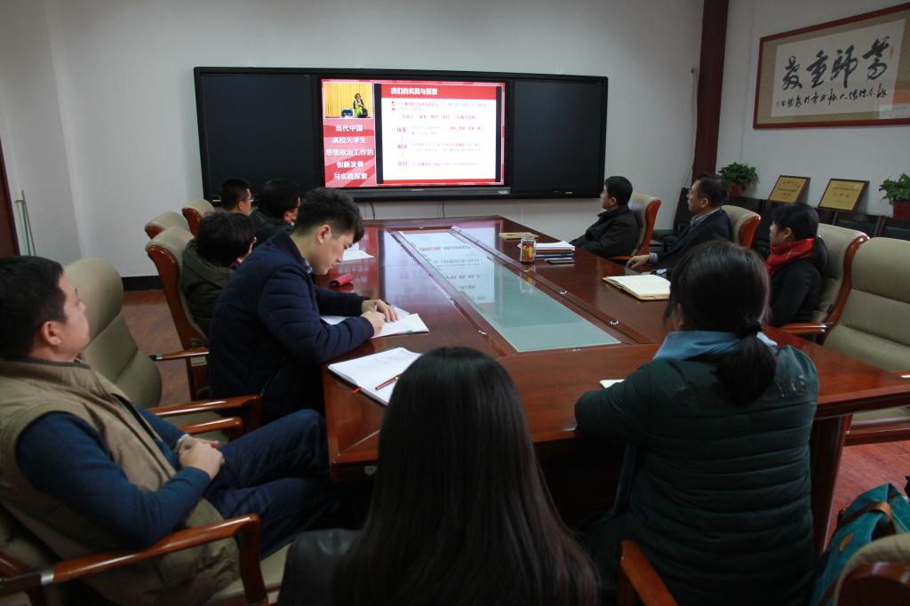 首先,参会人员集体收看学习了南京航天航空大学党委学生工作部部长王晖的报告,题目为《当代中国高校大学生思想政治工作的创新发展与实践探索》,她详细介绍了南航围绕基础层、核心层和拓展层的十二项核心素质能力指标展开的大学生思想政治教育实践,他们在教育、教学实践方面的探索既有创新性又符合大学生发展的基本规律,使在场人员深受启发。