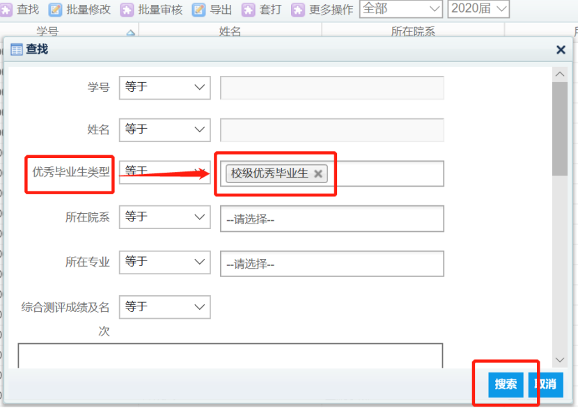 学校根据学院初选情况统一进行校级毕业生初选设置。