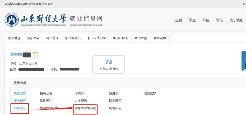 (1)学院登录山东财经大学就业信息网,选择就业管理,点击优秀毕业生评选,再点击查找。