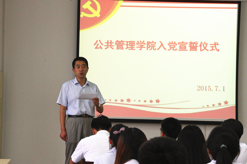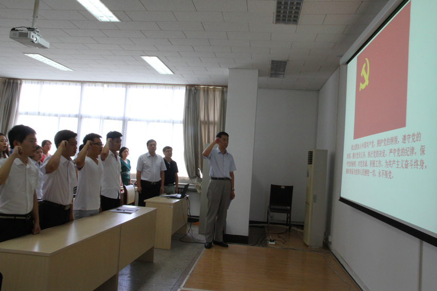 隆重举行2015年“七一”新党员宣誓大会,学院党委委员、教工党支部书记、学生党支部书记、本学期新发展的23名学生党员以及入党积极分子代表参加会议,会议由党委副书记周炎主持。