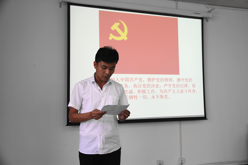 宣誓大会在雄壮的国歌声中开始,党委副书记周炎领读誓词进行宣誓,全体新党员举起右手,握紧拳头,面对党旗,庄严宣誓,这一时刻将永远铭记在全体党员内心深处,鞭策大家时刻以一名党员的标准严格要求自己。