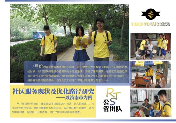 暑期社会实践团队围绕城市社区服务进行调研。在调研中,团队与广大居民打成一片,多次与社区群众一起互动交流,活动内容及形成的调研报告引起了省内多家媒体关注,尤其是山东主流媒体《齐鲁晚报》专门派记者跟踪了活动全过程,对冒着酷暑蹲点社区的学生进行了采访,罕见地以两个版的篇幅对调研进行了报道。济南新闻广播电台106.6等多家媒体也对团队进行了采访报道。“大众论坛”上的帖子也引起众多网友关注互动,截止到9月14日,访问量近7万,跟帖数已近千。