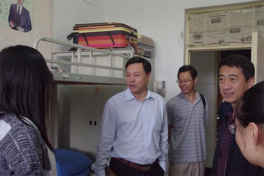 党委书记郑磊,副院长董西明,党委副书记周炎莅临迎新现场视察、指导迎新工作,向学生会干部了解新生的报到与安排工作,并与休息区的家长亲切交谈,给新生家长答疑解惑,解决他们的后顾之忧。随后,学院领导来到新生宿舍,询问他们对生活环境的感受,记录了同学们提出的疑难和问题,提醒他们注意宿舍安全,鼓励他们尽快熟悉学校环境和宿舍生活。