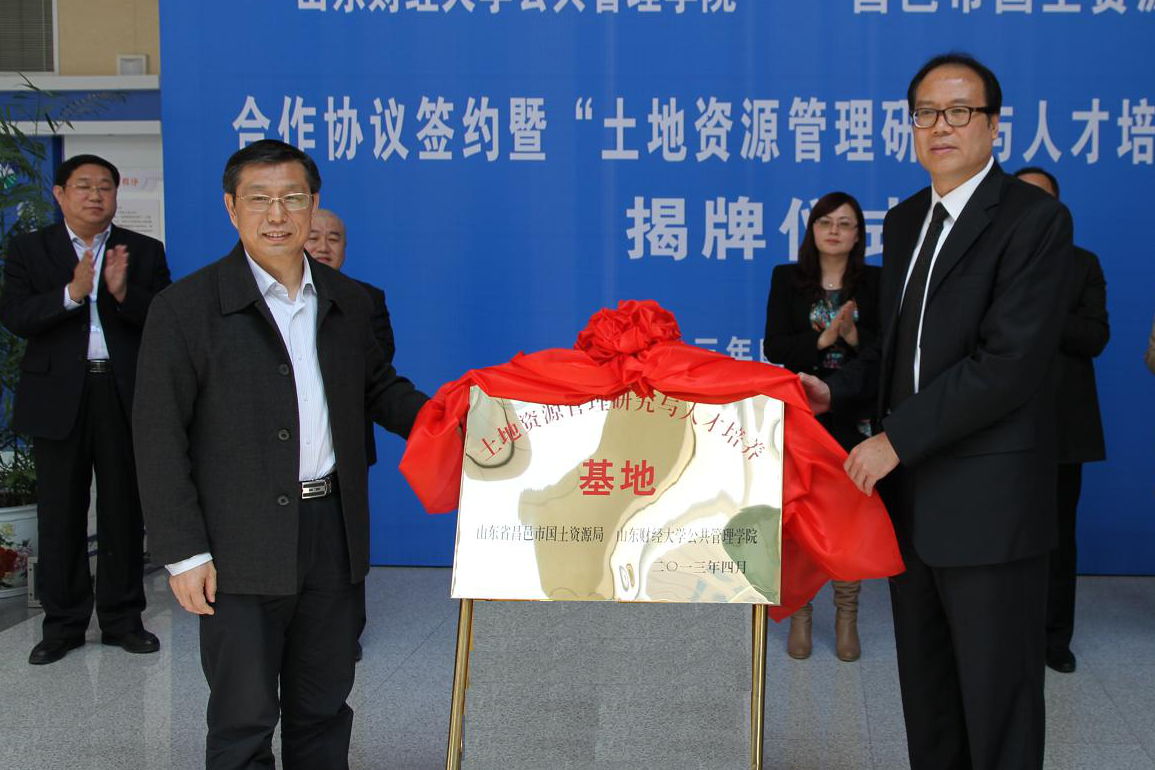 与昌邑市国土资源局全面合作协议签约暨“土地资源管理研究与人才培养基地”揭牌仪式在昌邑举行。学校党委委员、副校长吴彬教授出席签约仪式,并与潍坊市国土资源局党委委员孙希志共同为“土地资源管理研究与人才培养基地”揭牌。体育论坛