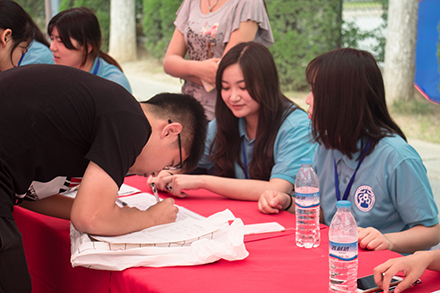 2017级本科生迎新工作在明水校区篮球场正式拉开序幕,在现场学生会成员及迎新志愿者着装统一,分布于各个接待点,各司其职,以良好的精神面貌迎接2017级新生的到来。