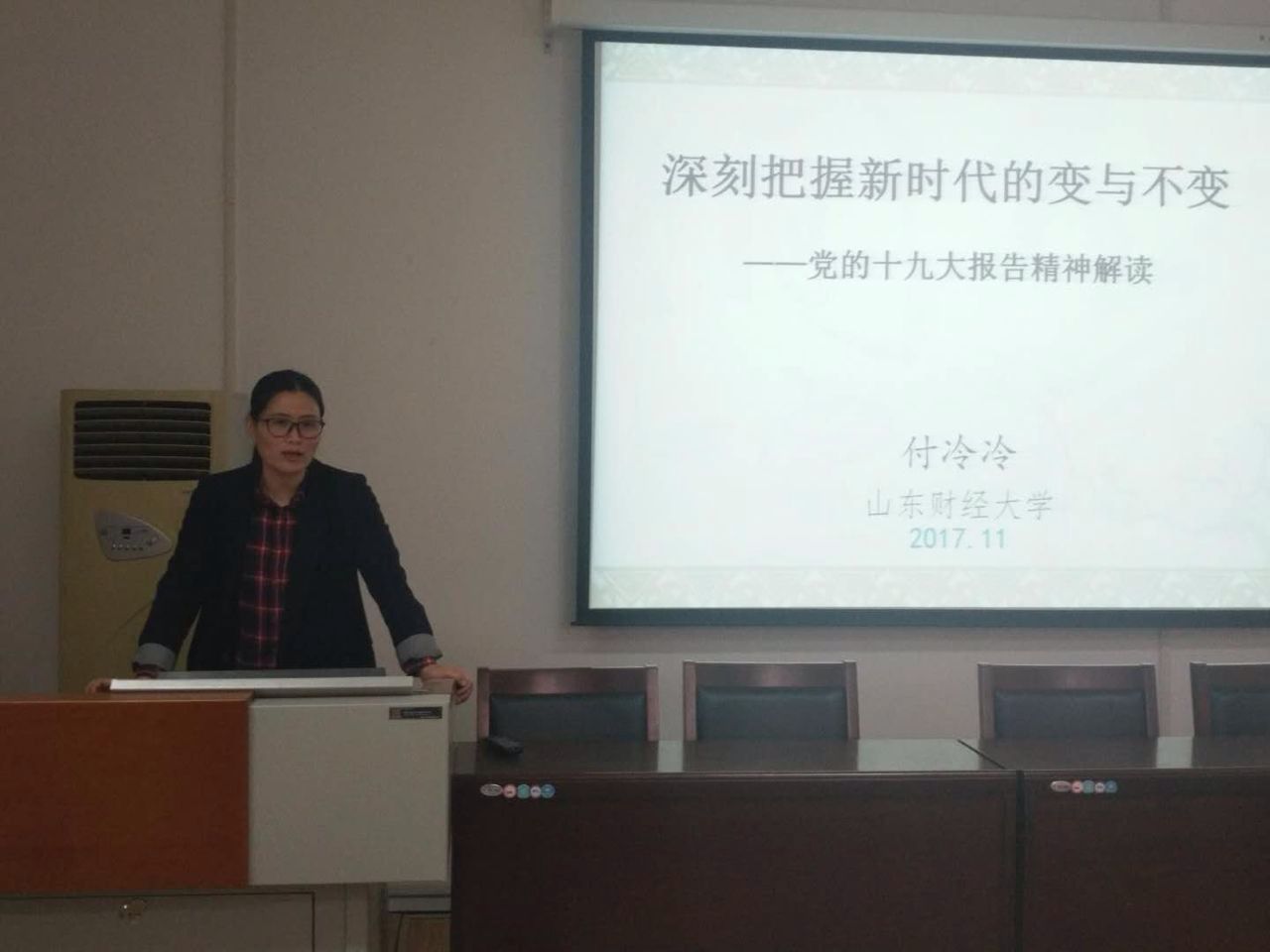 (通讯员 周昊声)为深入学习和践行十九大精神,帮助同学们领会和把握十九大提出的“新时代”的真正含义,11月16日下午,在学院党委的安排部署下,行政管理系副教授付冷冷以“深刻把握新时代的变与不变”为题,举办了一场深入浅出、意义深刻的十九大报告解读讲座。讲座由党委秘书李昭娜老师主持,体育论坛