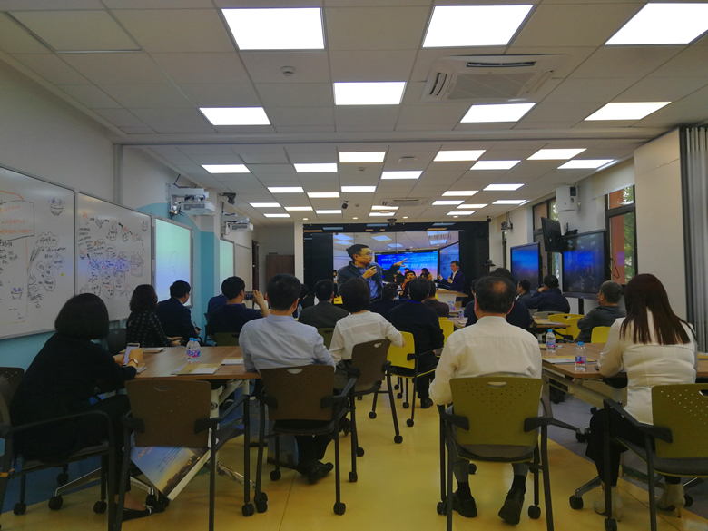 座谈后,刘季平书记邀请张院长一行参观了复旦大学智慧治理实验室。实验室管理人员详细介绍和演示了该综合实验室的签到系统、多功能会议(直播与远程会议)、弹幕参与、3D投影与增强现实、课程录制、发起投票、实物投影、截图上传、语音转文字同步记录与上传、讯飞输入、同声传译、手机与实验室对接转换、AR与VR技术体验等诸多整合性“强悍”功能。实验室在决策模拟、头脑风暴、大型路演、翻转课堂等教学活动中,表现出极为显著的组织优势和呈现效果。现场,代表团体验式地参与了课程弹幕评论活动,并近距离观摩了实验室送货机器人的“行为服务”,实验室硬件的“智”、软件的“优”及其有机融合,令人耳目一新。在了解实验室先进的跨域会议、实景实验、综合培训、多类交流等智能化、一体化功能的基础上,大家还对实验装备购置、功能实现与管理服务等议题展开了深入探讨。