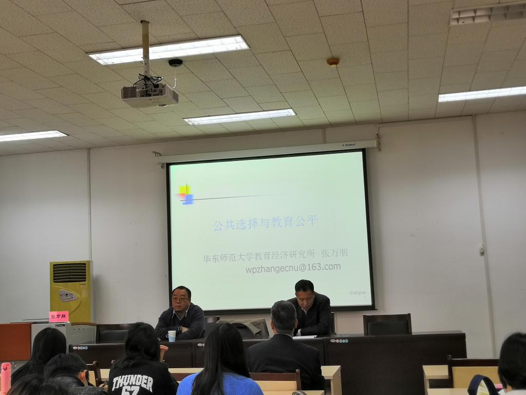 邀请,华东师范大学张万朋教授做客“公共管理大讲堂”,在4407教室做了题为《公共选择与教育公平》的专题讲座。讲座由体育论坛