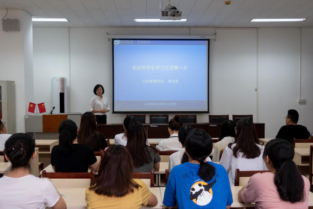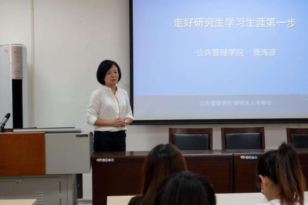 学科建设的优异成绩。接着,贾院长讲解了“导师如何选学生”和“学生如何选老师”两个方面的内容,告诉新生选择适合自己兴趣特点的导师,重点强调在以后的学习过程中,多与导师交流沟通,仔细聆听导师建议。之后,贾院长分享走好研究生学习生涯的经验,第一,要珍惜时间,做事专心专注;第二,要守住底线,遵守学术规范;第三,要精心规划,明确短期与长期目标,并为新生做出三年研究生生活的详细规划,让新生有计划有目的地开启研究生学习生活的大门。