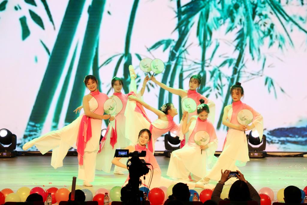 晚会在活力四射的啦啦操中拉开帷幕,学院啦啦队带来的《我最红》,高难度的动作与整齐划一的跳跃,演绎青春奔放之美感,迅速点燃了全场的气氛。