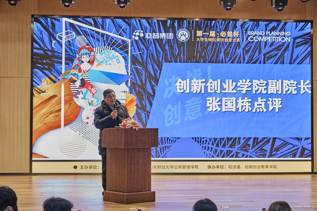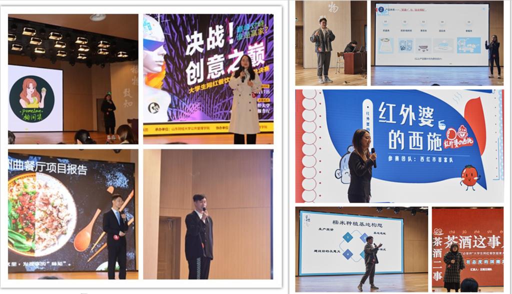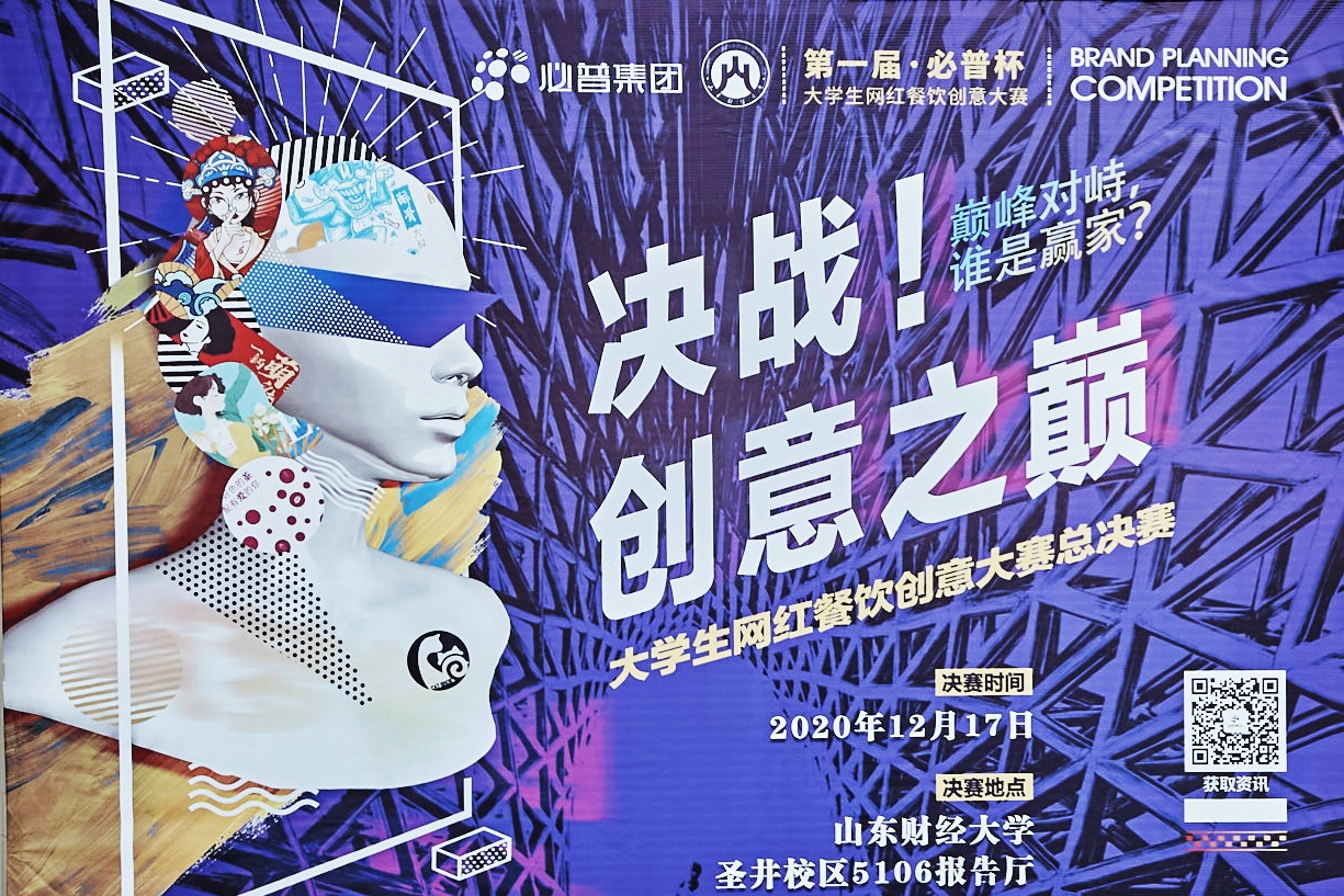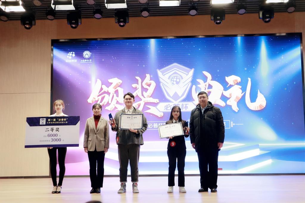与校团委、创新创业教育学院、必普集团联合举办山东财经大学第一届“必普杯”大学生网红餐饮创意大赛,此次比赛是学校跨界融合创新的有益探索和尝试,一经发起,就得到了全省各高校的积极响应,组委会共收到有效作品231份,经过初赛和复赛两轮评审,最终遴选出 10 支队伍晋级决赛。12月17日下午,决赛于圣井校区文化活动中心成功举行。