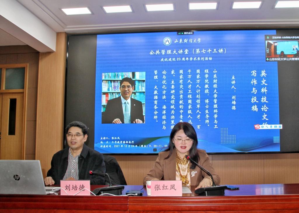 (通讯员:陈晓彤)2021年12月24日上午,公共管理大讲堂(第73讲)学术讲座成功举办。山东财经大学管理科学与工程学院教授、博士生导师刘培德,为体育论坛