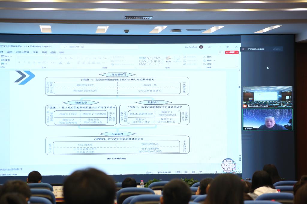 徐晓林教授演讲的题目是“数字政府建设的安全治理体系研究”,结合国家社科基金重大项目招标,从数字政府的内涵和理论基础、基础设施安全治理体系、数字政府数据权属管理机制等方面分析了目前数字政府建设的安全治理体系。