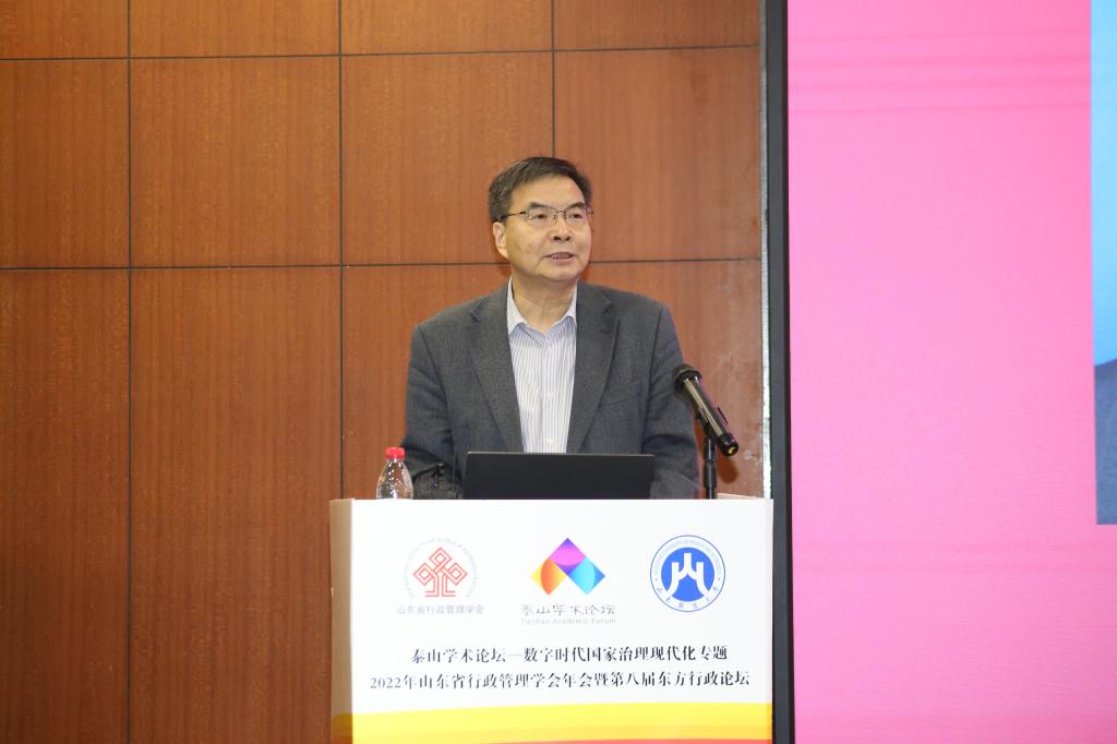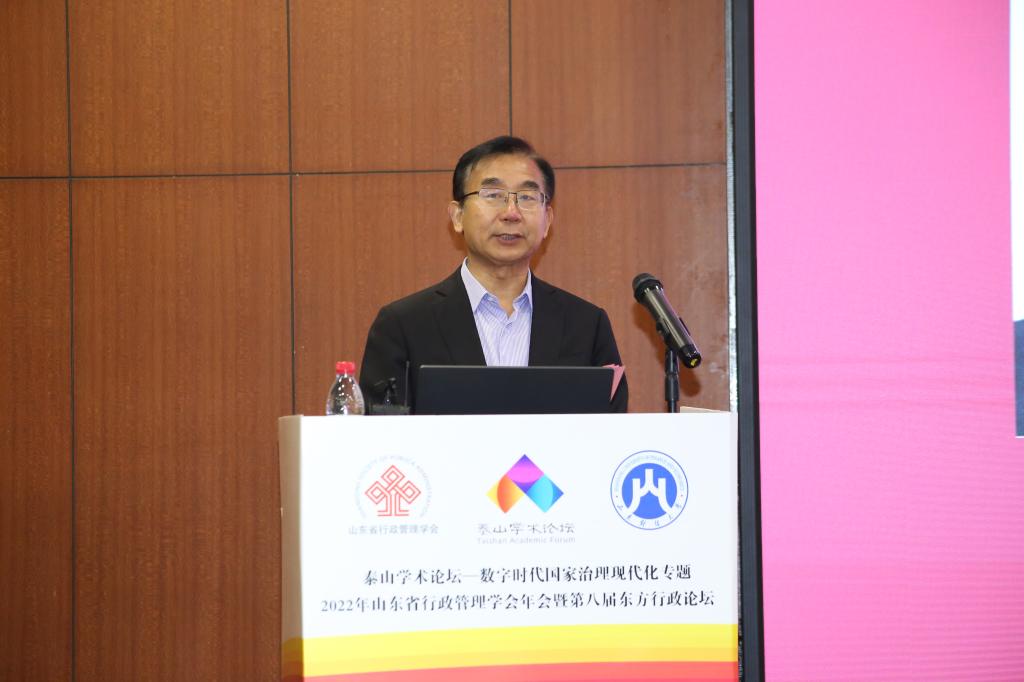 山东省政府参事、山东省行政管理学会会长张述存研究员在致辞中介绍了山东省行政管理学会在国家课题研究、决策咨询服务、高端论文发表等方面取得的突破性进展,表示学会将紧紧围绕学习贯彻党的二十大精神,进一步充分发挥学会作为行政管理新型智库的突出优势,探索建立健全更加适应新时代行政管理研究需求的体制机制,多提出一些更具有针对性、现实性和可操作性的政策建议。