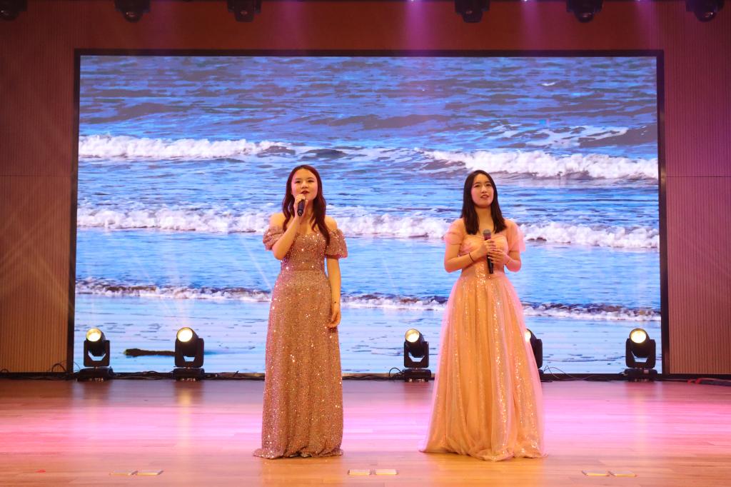 晚会开启第一章:春色。首先是古典舞《入画江南&汉服社走秀》,衣袖翩飞,让我们仿佛梦回盛世,穿越千年,缓步踏入烟雨江南的美丽画卷。器乐演奏《风住过的街道》音符跳动,思绪慢慢开始萦绕,情愫渐渐流转,音乐如水,涓涓细流,潺潺向前,细腻感人。随后,器乐演奏《赛马》明快而有力,骏马奔腾的壮观场面仿佛跃然眼前。两位同学手指翻飞,用跳跃的双手弹奏华美的乐章。教师合唱《光阴的故事》,薪火相继,锐意进取。过去的公管谱写了无数辉煌与光荣的诗篇,未来,我们将继续创造美丽的杏坛神话。