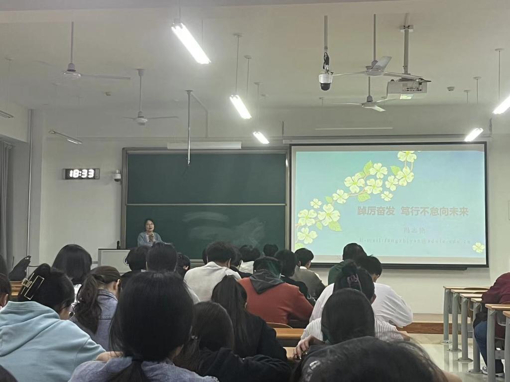(通讯员 窦雨萌 摄影 林大凯)花样年华,日月同辉,为引导大学生自信从容、积极昂扬的面对学习生活,4月10晚,“踔厉奋发,笃行不怠向未来”讲座于圣井校区8208召开。本次讲座由体育论坛