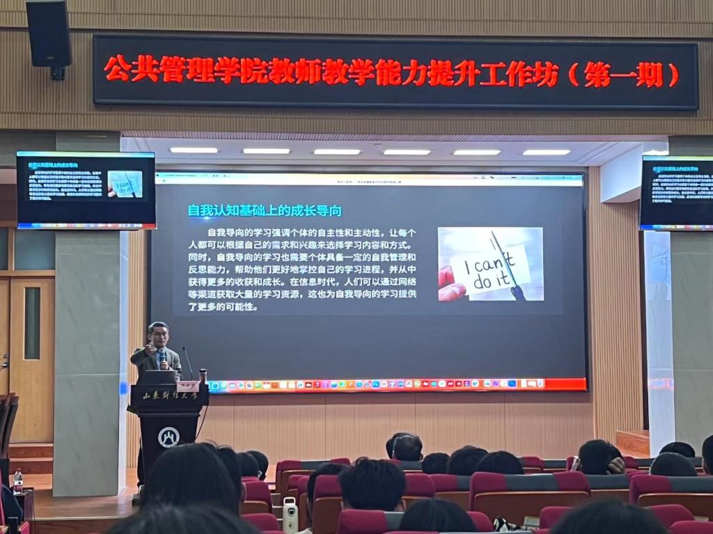 教师教学能力提升工作坊举办首场活动,邀请齐鲁师范学院外国语学院梁承锋教授作题为《“教学之成学”——成长逻辑变革时代的教学实践方略》专题报告。学院党委书记张建、院长贾海彦、副院长李善乐及学院部分教师和学生参加活动。工作坊由副院长罗微主持。