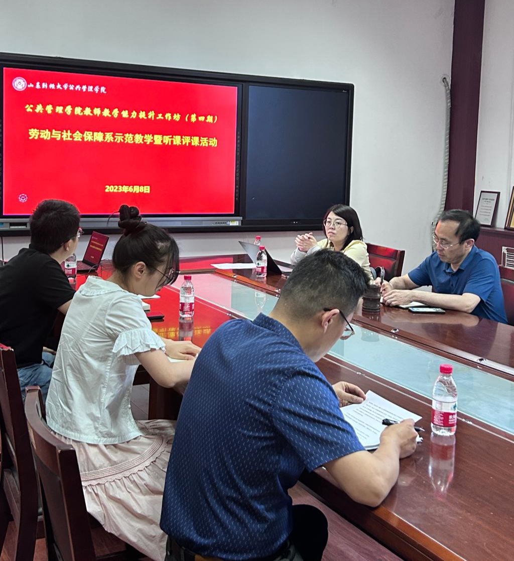 教师教学能力提升工作坊(第四期)成功举办。本次工作坊的主题为“劳动与社会保障系示范教学暨听课评课活动”。学院党委书记张建、劳动与社会保障系主任徐宏及各专业教师代表参加,劳动与社会保障系副主任刘玉安主持。