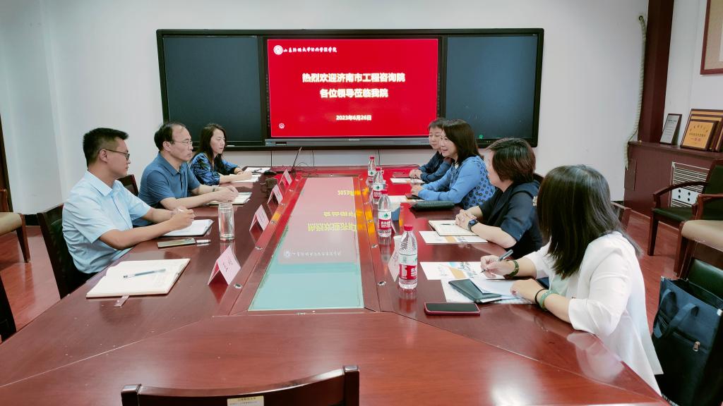6月26日,济南市工程咨询院党总支书记朱咏梅、副院长黄健、党总支副书记李燕、党群人事部副主任李晓潆来学院参观调研,就社会实践基地运行等相关问题进行座谈交流。学院党委书记张建主持座谈,副院长姜琪、专职组织员李昭娜、学院团委书记王超参加。