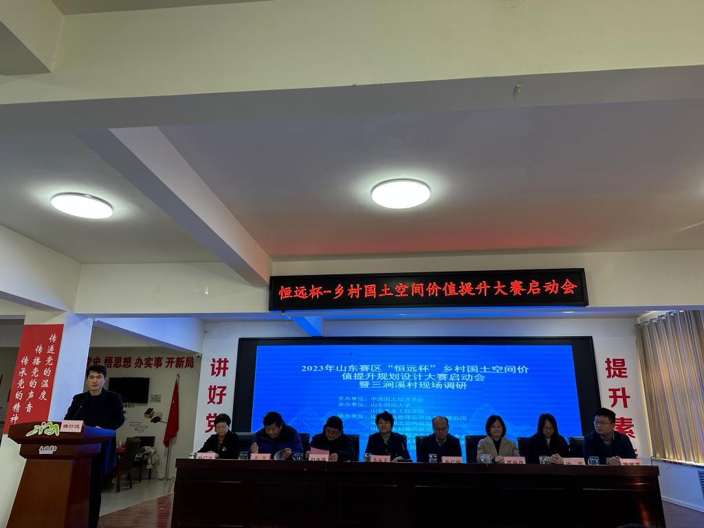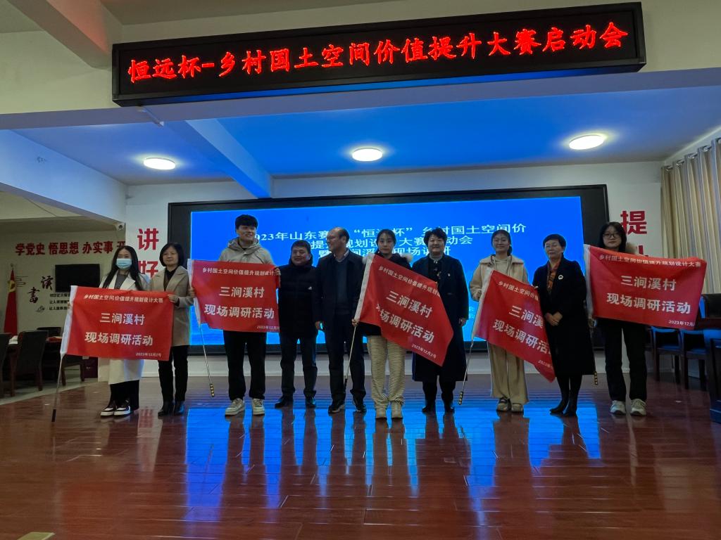 12月2日,由中国国土经济学会主办,山东财经大学与山东农业工程承办、山东省恒远地理信息技术有限公司、山东省国土空间规划协会等单位协办的第二届全国大学生乡村国土空间价值提升规划设计大赛(山东赛区“恒远杯”)启动会暨三涧溪村现场调研活动成功举办,来自山东财经大学、山东农业工程学院、山东农业大学、山东师范大学、山东建筑大学、济南大学、齐鲁师范学院等高校的100余名师生参加了活动。