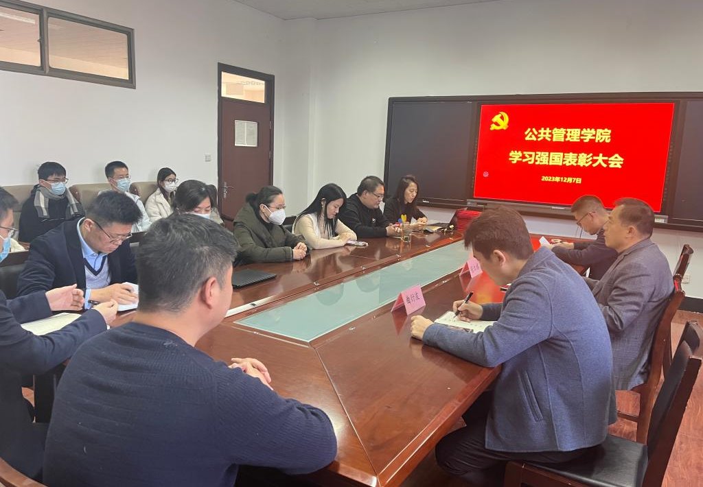会上,罗微宣读了《关于对“学习强国”优秀支部和学习标兵进行表彰的决定》。《决定》指出:自“学习强国”学习平台推广使用以来,学院党委把用好“学习强国”平台作为学习贯彻习近平新时代中国特色社会主义思想的重要举措,迅速行动,积极部署,各支部书记积极响应,认真组织。通过读文章,看视频,比成绩,“晒”积分,涌现出了一大批勤学习、爱学习、乐学习的先进典型。为推进“学习强国”学习活动深入开展,截至2023年11月30日,根据积分排序,决定授予办公室党支部优秀支部荣誉称号,授予李昭娜、朱艳、张红凤、刘玉安、孙敬华、张宝峰、张溪等17名同志“学习强国”学习标兵荣誉称号。
