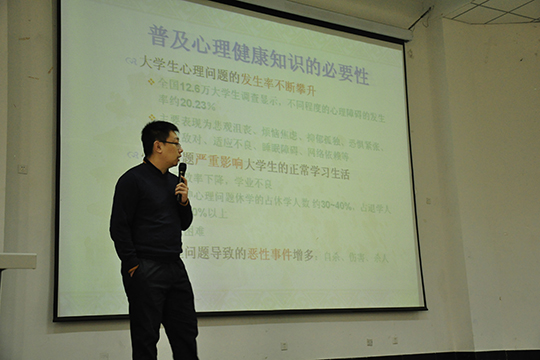 本次讲座,王旸博士围绕着重视心理健康的必要性、健康与心理健康的含义及要点、大学生心理健康的标准和大学生常见的心理健康问题及表现等方面进行了详细讲解。讲座开始时,王旸博士以当下大学生普遍面临的心理问题作为导入,并以真实的事件为例,证明了保持心理健康的重要性。随后,王旸博士讲到了当下大学生普遍面临的焦虑、抑郁等问题,并提出了合理解决问题的有效方法。在讲座最后,王旸博士与现场同学们进行了互动交流,针对同学们所提出的心理问题提出了切实可行的解决办法。同时王旸博士留下了自己的联系方式,以帮助未能提问的同学答疑解惑。讲座中,王旸博士语言风趣幽默,并结合当下流行话题,列举多项实例,不仅使台下产生了强烈的共鸣,更使道理浅明易懂,令人印象深刻。