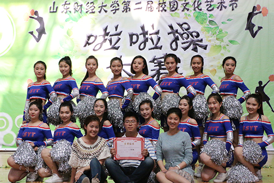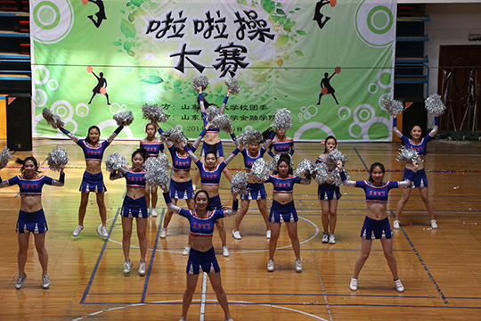 体育论坛 啦啦操荣获学校比赛三等奖 发布时间:2014-05-16 00:00 浏览 次 舞动青春绚丽,点燃财大激情。5月15日下午,山东财经大学“第二届校园文化艺术节”啦啦操大赛在舜耕校区体育馆隆重举行,来自各学院的14支啦啦操队参加了比赛,体育论坛 派出15名优秀队员上场进行了角逐。在前期训练中,同学们克服了训练伤病等困难,团结合作,技能得到了很大提高。比赛中队员们热情洋溢、活力四射的表演征服了在场的评委与观众,展示了体育论坛 学生昂扬向上、风采十足的精神风貌。经过现场评定,体育论坛 啦啦操表演荣获三等奖。
