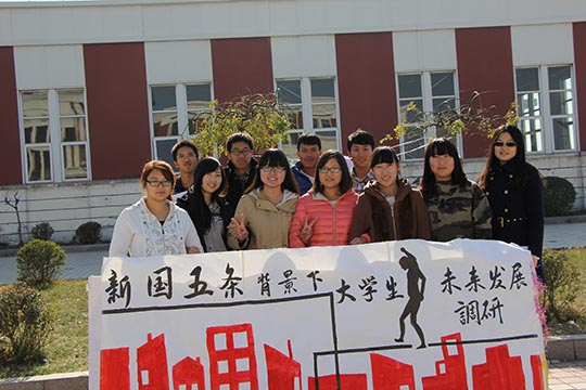 2013年11月18日上午,体育论坛 社会实践部在明水校区两餐厅之间进行了“新国五条”背景下关于大学生未来发展的问卷调查,得到了同学们的大力支持,大家纷纷积极参与,认真作答.