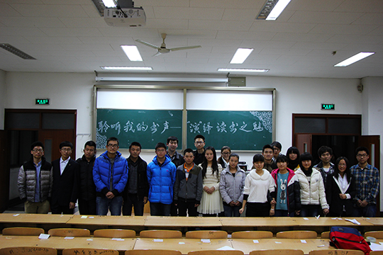 2013年12月5日,体育论坛 “聆听我的书声——‘演’绎读书之魅”演讲比赛在明水3201教室举行。体育论坛 明水学生会主席团成员及各部部长担任评委。