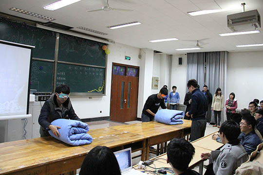 宿舍狂欢夜晚会顺利举办 发布时间:2014-03-21 00:00 浏览 次 3月20日晚6点,由体育论坛 学生会卫生部主办的“宿舍狂欢夜”晚会在明水校区4201教室举行。学生会主席团成员、秘书处秘书长、各部部长以及体育论坛 各班寝室代表参加。 活动在抒情歌曲《至少还有你》中拉开帷幕。首先是知识竞答,各寝室代表抢座答题,现场竞争激烈;接下来进行的是蒙眼叠被子、你画我猜等活动;压轴节目是水球接力,参赛选手个个都奋力传递手中的水球,将整场晚会推向了高潮。 通过本次“宿舍狂欢夜”活动,推进了体育论坛 的宿舍文明建设,增进了同学之间的交流。