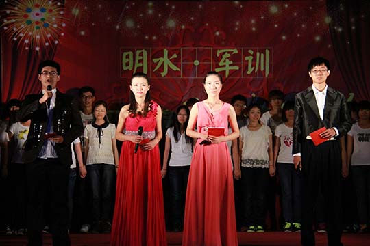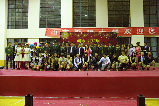与国际交流学院共同举办的2013级军训联欢晚会在明水体育馆隆重举行。学院党总支书记王有志、党总支副书记周炎、辅导员张辉,国际交流学院党总支副书记张红艳、辅导员王坤,军训团五营八名教官以及两个学院的800多名新生参加了本次晚会。