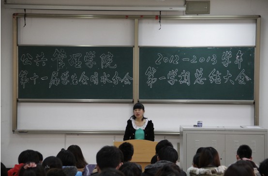 3月21日下午3点,体育论坛 第十一届学生会明水分会2012—2013学年第一学期总结大会在明水3101教室举行。学生会主席团、各部部长、副部长、干事出席了本次大会。会议由秘书长姜婷主持。