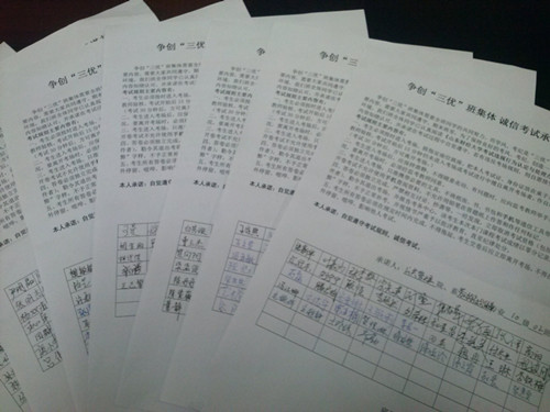 全体学生在期末复习之余,还参加了“争创三优班级诚信考试”大型签字活动。