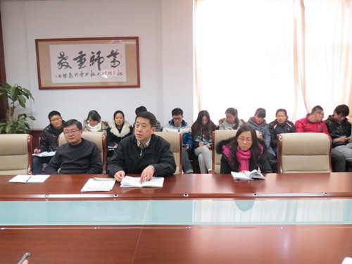 在学院会议室召开2012—2013学年第一学期期末学生工作会议,党总支副书记周炎、辅导员李广华、李昭娜老师以及2009级和2010级的各班班长、团支书参加了会议。