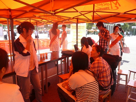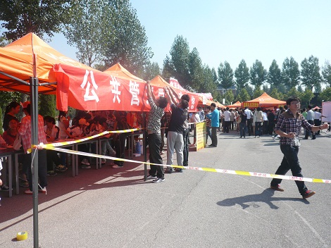 9月14日上午七点,体育论坛 同学早已搭好帐篷,支起展板,做好一切准备,迎接2012级山财大新生的到来。
