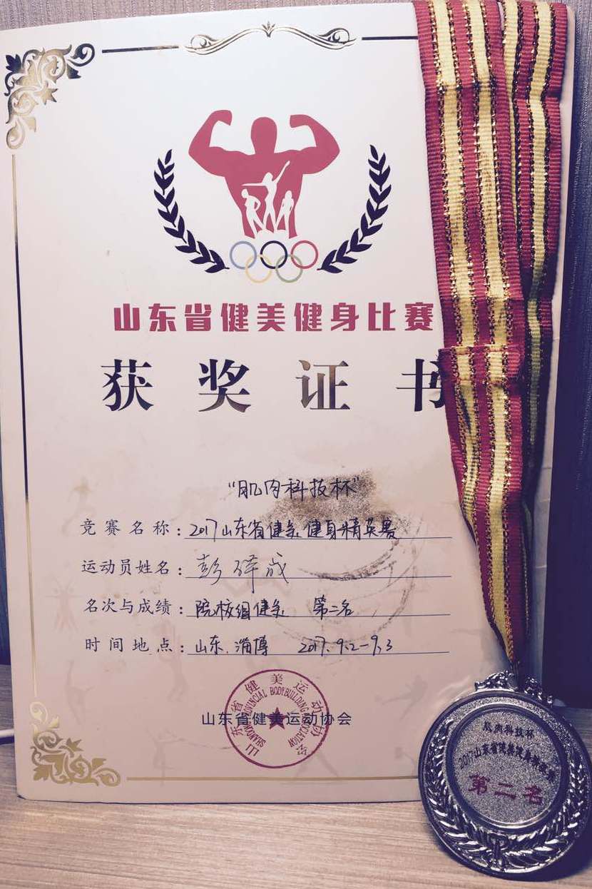 研究生彭体成在本次比赛院校组“健美项目”中勇夺亚军。