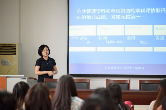 报告会上,贾院长用简明扼要的语言介绍了学院历史发展沿革和硕士点的基本情况。接着,就导师如何选学生、学生如何选导师和研究生的三年学习生活安排等问题进行了讲解,对研究生三年专业学习,从课程讨论、文献综述积累、论文写作与发表、考博、研究生培养方案等问题进行了详细阐述,并督促新生要尽快实现从学生到“学徒”的转变角色。