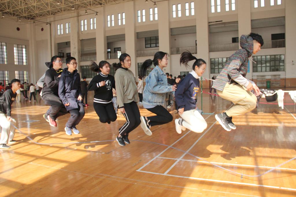 反应测试“抓手指”,热身游戏“一块五毛”,集体游戏“背靠座椅”、“名字传递”,组队游戏“翻牌竞速”,团体竞速五项目“不倒森林”、“激情节拍”、“跳大绳”、“排球击鼓”、“激情穿越”,一共进行六个合作游戏。几根绳子,几根塑料管,排球、大鼓等几个寻常可见的道具却让大家玩的充实,笑得灿烂。跑步时奋力冲刺,观赛时高喊加油,大家的热情充斥着体育馆,彰显着宝贵的团队合作精神。