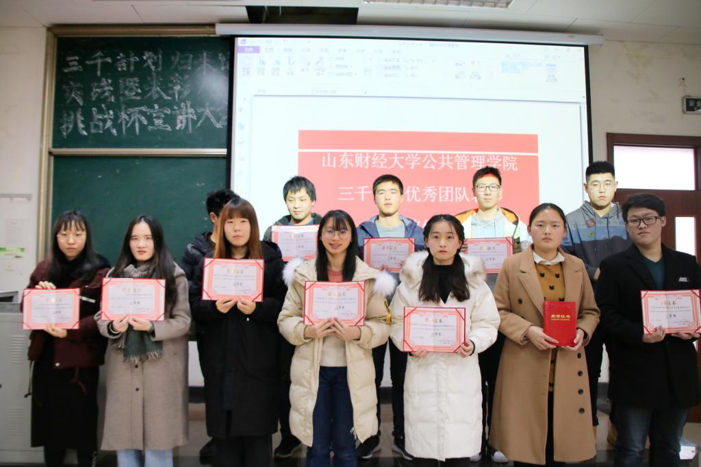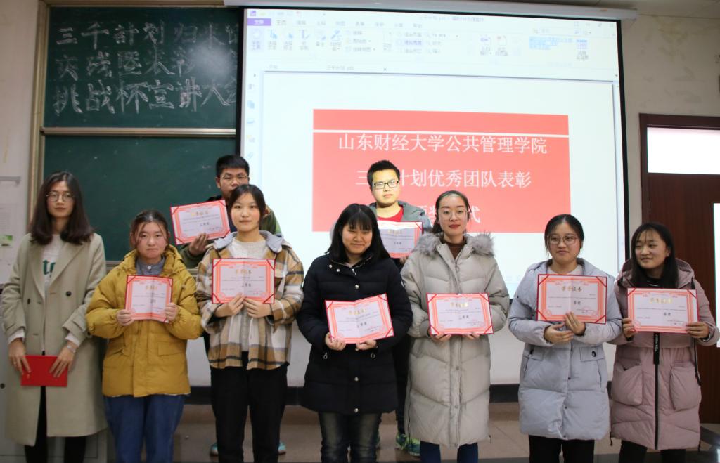 三千计划是山东财经大学暑期特色实践活动,经过多年传承已经形成了完整的体系,一代代山财人在实践中寻成长,具有了关注社会,关注民生的家国情怀。希望新一代的公管学子能够积极参与,认真对待,在实践中继往开来,沿着上一代优秀公管人的足迹,走出属于自己的辉煌,公管学子亦当明德树人,为社会之发展尽自身之薄力,更在其中描绘属于自己的碧海蓝天,精彩人生。