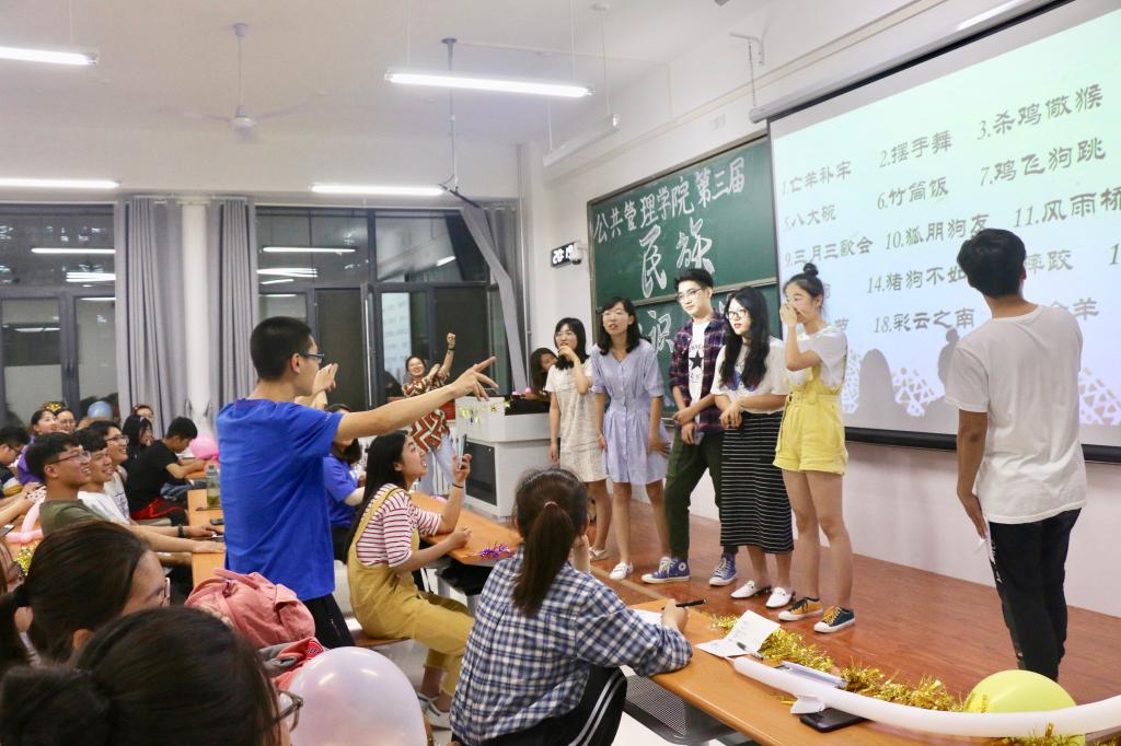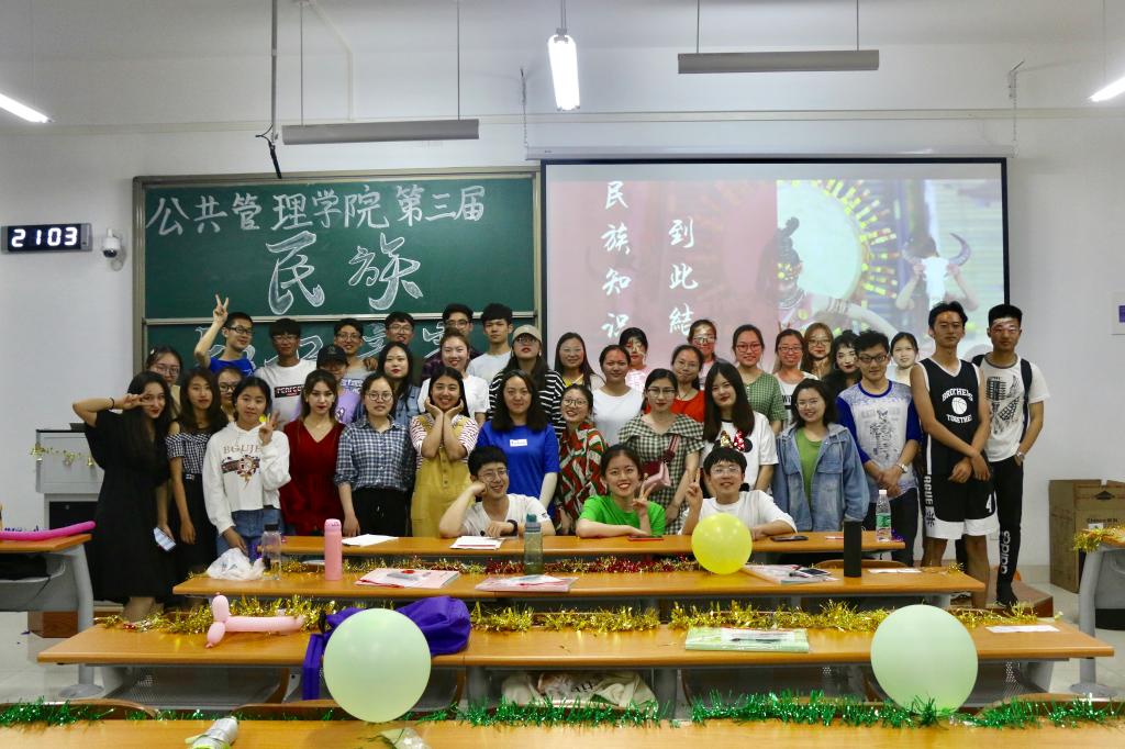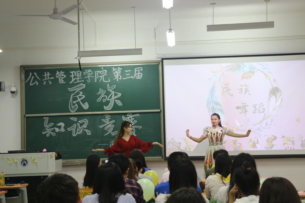 本次竞赛题目以民族知识为主题,涉及的知识面较为广泛;通过选择判断、听歌识曲、你画我猜等丰富的答题形式展开竞赛,使本次竞赛既具备知识教育性,又意趣盎然。活动现场气氛热烈,选手们集思广益,踊跃答题;台下观众也积极互动,参与思考。比赛中场穿插了游戏环节与精彩的民族歌舞节目,将现场气氛推向高潮。最后劳保1801班、劳保1802班和公事1802班的队伍获得本次民族知识竞赛前三名,由学生会副主席祁培宸同学为他们颁发奖状及丰厚产品。
