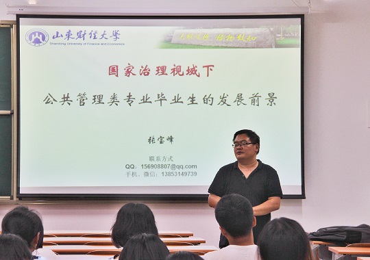 政府管理系主任张宝峰老师主讲,其主题为“国家治理视域下公共管理类人才的就业前景”,体育论坛