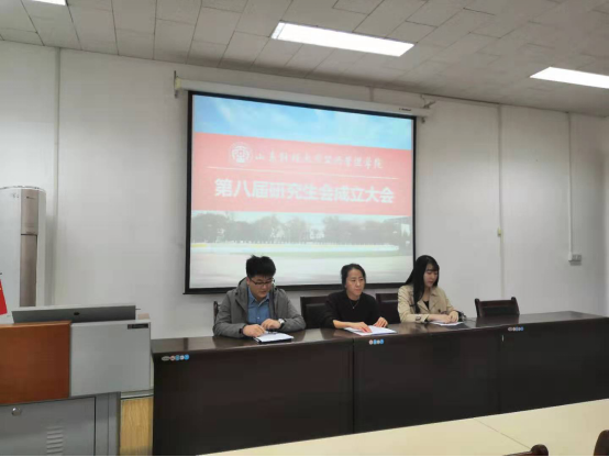 在4407教室召开学院第八届研究生会成立大会,辅导员李昭娜,第七届研究生会主席赵胜利,第八届研究生会主席团成员、各部部长及2019级全体研究生参加了会议。会议由李昭娜主持。