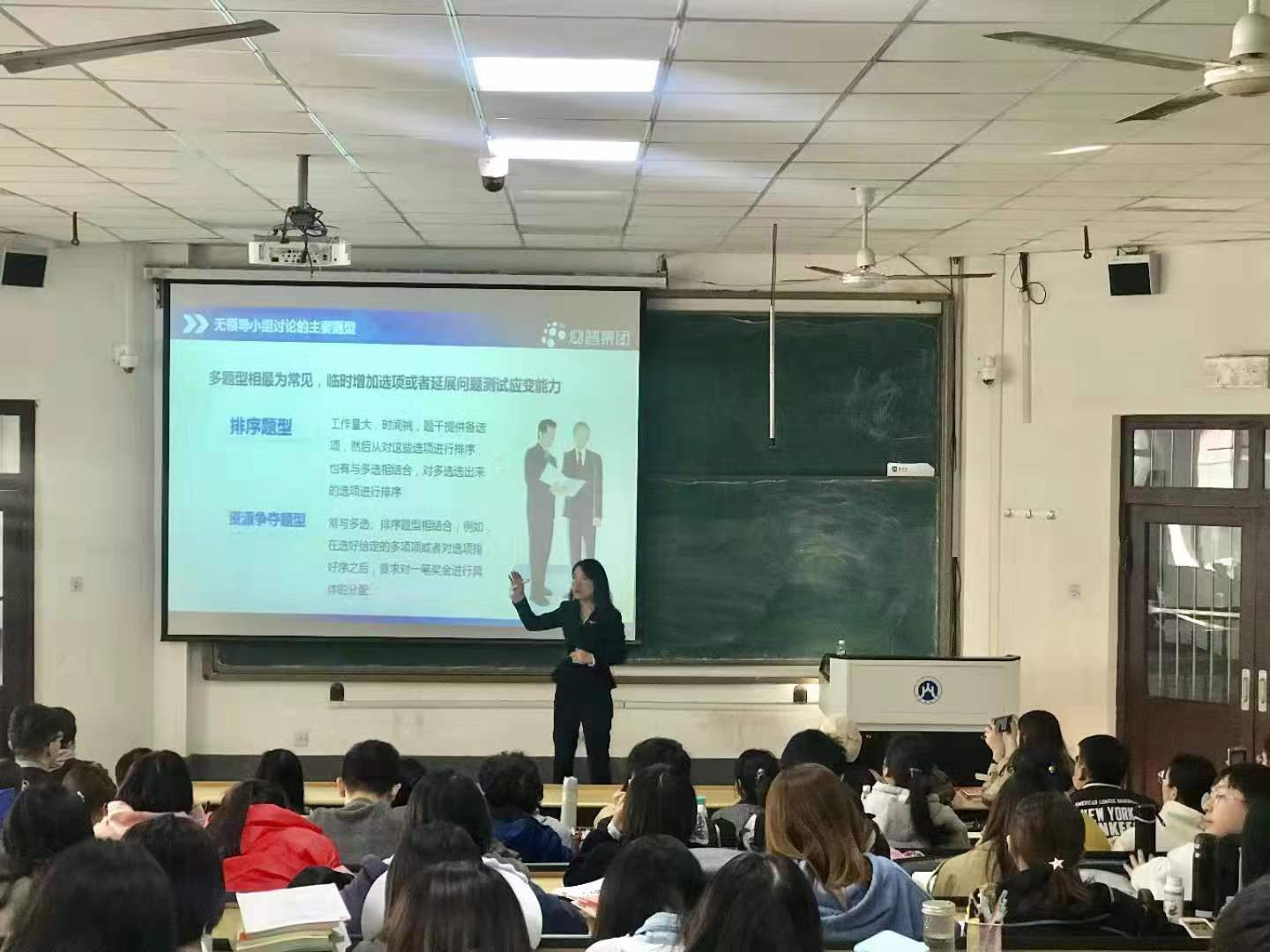 在培训会开始之初,王为老师与同学们进行了密切互动。通过问答,初步掌握了同学们的对无领导小组讨论的了解水平与认知基础。