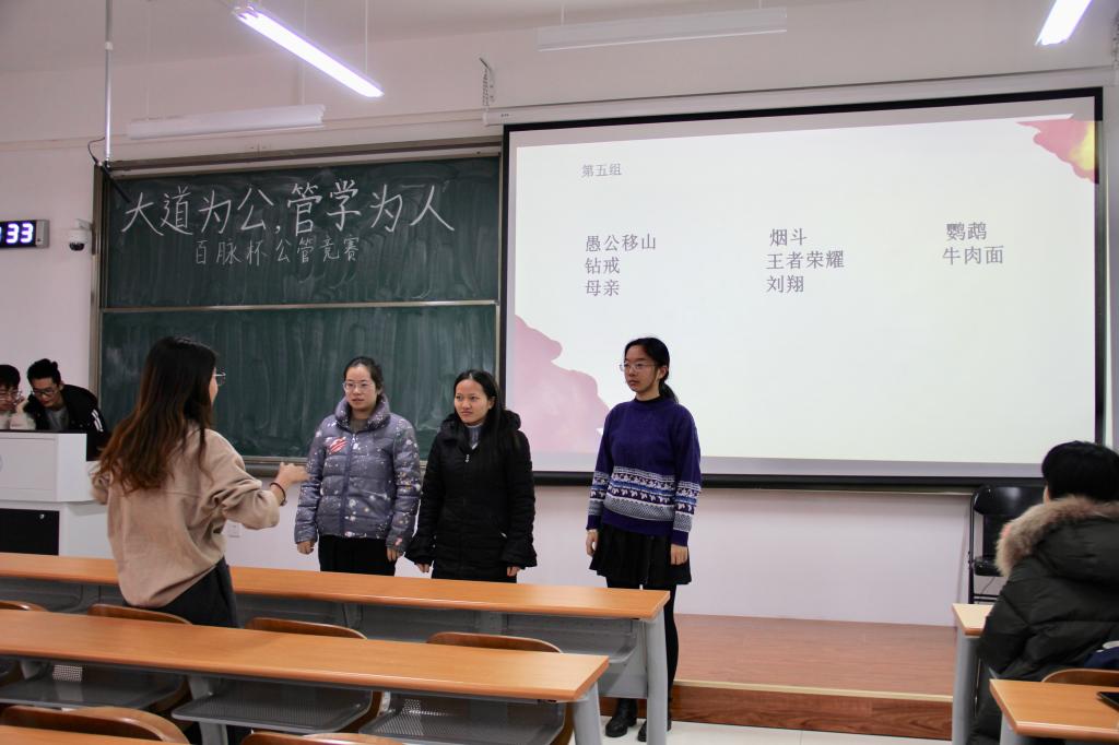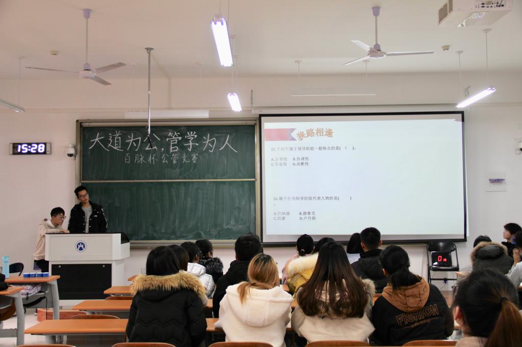 学生会共同举办的“百脉杯”学科知识能力竞赛——“大道为公,管学为人”公共管理知识竞赛在圣井校区8208举行决赛。山东财经大学学生会副秘书长张洲荃,体育论坛