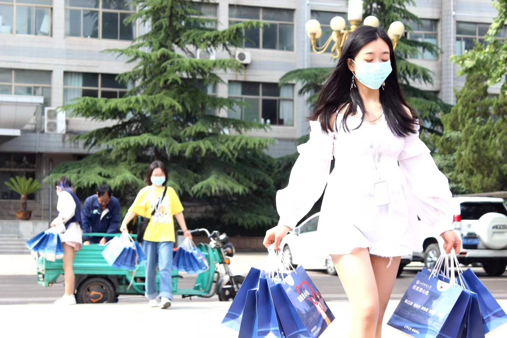日到校的学生志愿者也积极行动,全力配合学校、学院工作安排,为