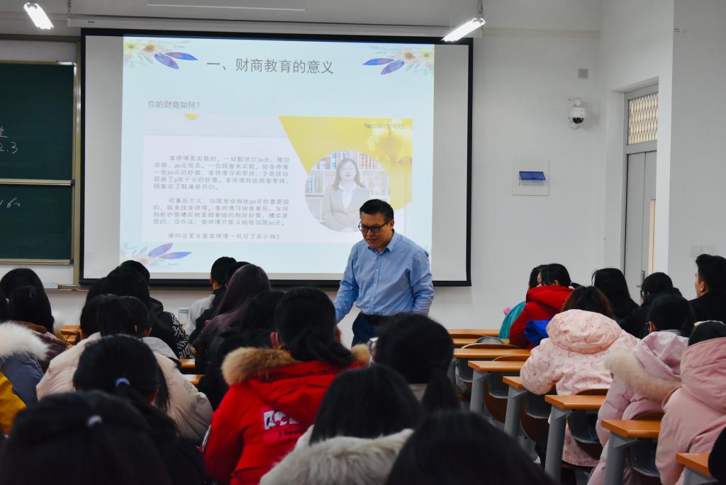 首先,张士强老师向大家讲解了财商教育的意义。张老师通过对当代大学生财务来源及规划的调查进行评讲,告诉同学们要在观念、智识、心理上树立正确的金钱观和财富观,要积极学习财商知识,构建良好的财商思维体系,能够将财商知识应用于生活之中,从而真正获得财务自由和人生自由。