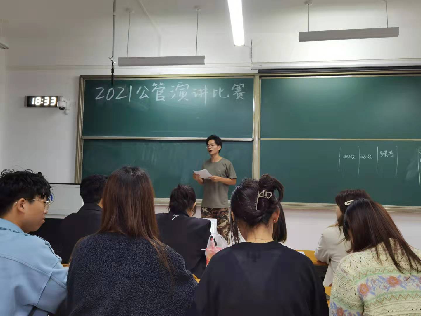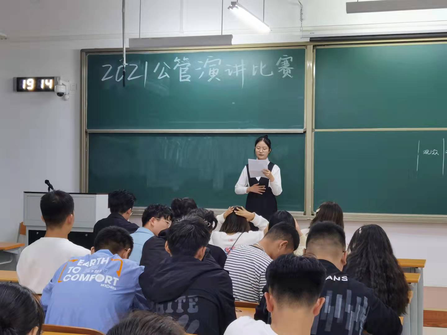 21级新生演讲比赛初选在圣井校区8212教室进行。此次比赛由体育论坛