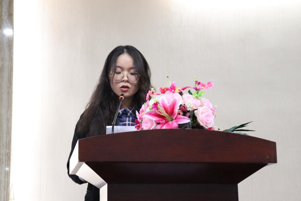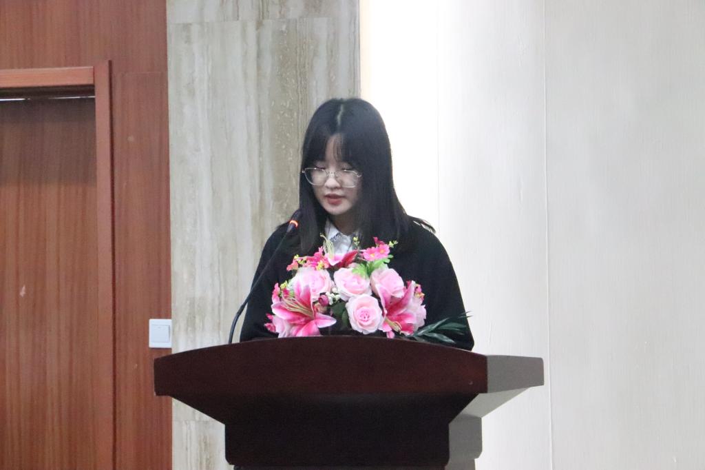 首先,大会以视频的形式展示了第九届学生会的工作历程和工作总结。随后,第九届学生会主席宋莲同学发言。她通过“持续探索、不断尝试”“敢于创新与协调”和“坚守初心、不负重任”三个方面叙述了她在学生会的成长历程,表达了她对学生会的热爱,并以“功成不必在我,功成必定有我”与第十届学生会成员共勉,祝愿学生会的明天更加美好。