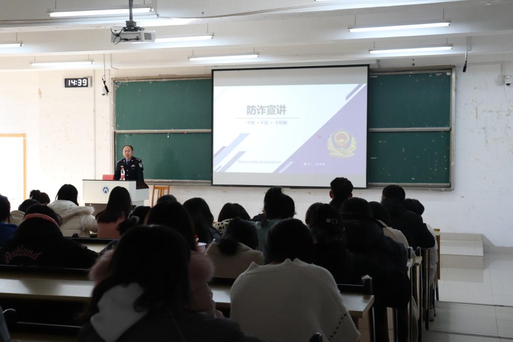 讲座过程中,代科长提出,随着时代的进步与科技的发展,传统案件发生率越来越低,新型电信网络诈骗案件数量火速上升,被诈骗金额急剧增加。他用真实的案例与具体的金额数字,提醒同学们们要提高自我防范意识,抵制虚假诱惑,注意个人财产安全。