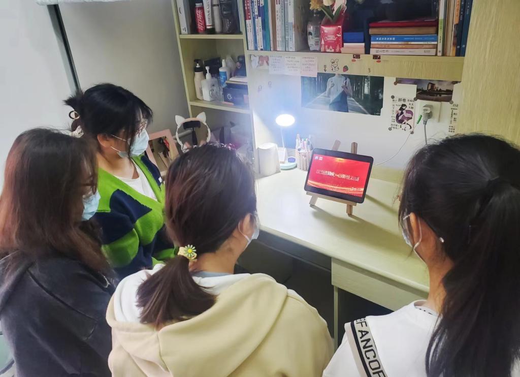 全体师生在结合学校疫情防控实际要求的前提下,采用线上+线下的方式,通过网络、广播、电视等媒体进行收听收看。